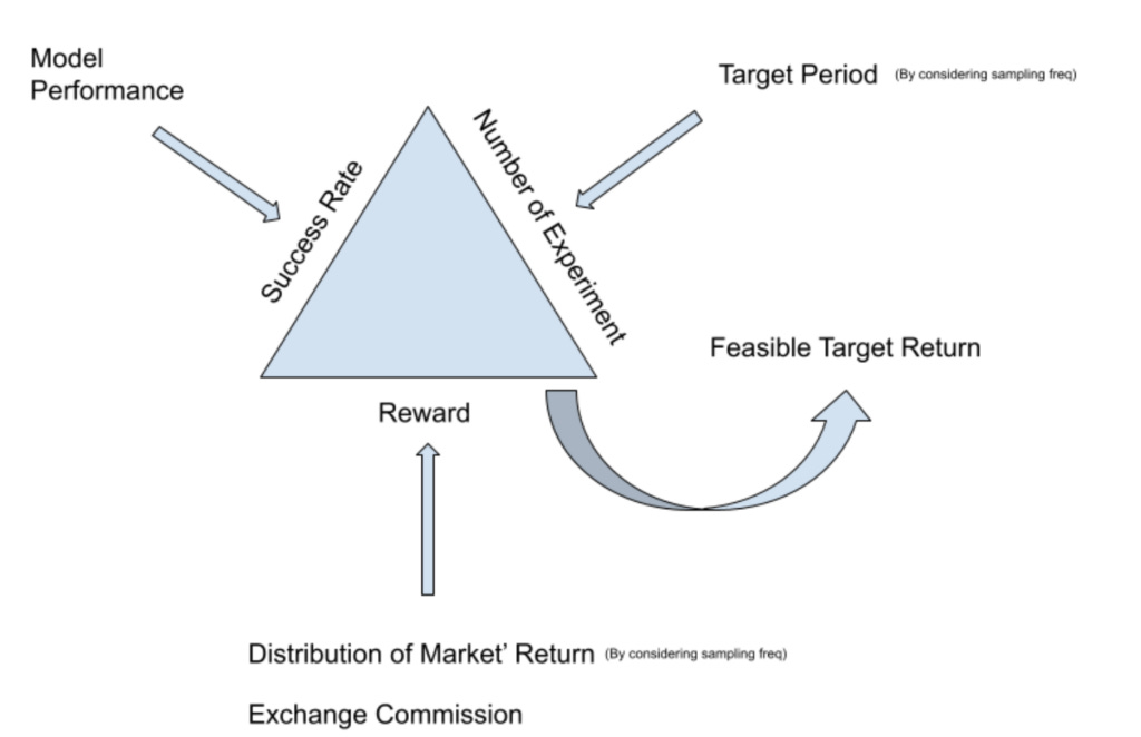 Despite all of these powerful and sometimes complicated metrics, there is still one important question. Can a trader (any type of them, quantitative trader, hedge fund, fundamental trader, etc.) guarantee a specific return to its customer? Not only to customers for marketing purposes, but also to their department or team? Is it possible to set a ‘return’ goal in the financial market and plan to reach it? For example, is it possible to say, ‘we want to gain a 300% Return in the FX market next year? Or can our team guarantee a 500 % annualized return in the cryptocurrency market? Usually, these questions are essential to those who want to collect AUM and implement their proposed trading strategy. In other words, the main question is, “is it feasible to gain an arbitrary target return during a specific period in a particular market?”